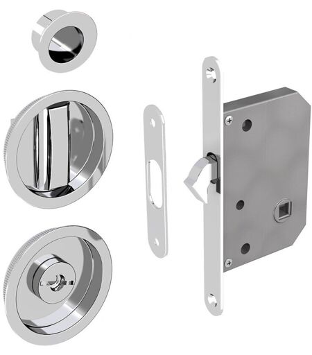 Slid'up By Mantion - Kit serrure à condamnation, poignée ronde, acier finition chromé