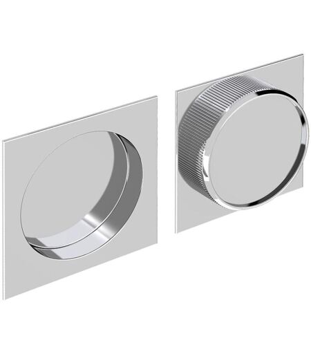 Poignées à encastrer pour porte coulissante Jeu de 2 poignées carrées 57 x 57 mm Encastrement : Ø 48 mm En acier finition chromé Garantie : 5 ans Quantité : 2 Lot de 2 poignées carrées à encastrer en acier finition chromé. Pour portes coulissantes d'épaisseur 25 mm minimum. Dimensions : 57 x 57 mm. Encastrement Ø 48 mm. Poignée encastrable extra plate permettant aux portes de coulisser sans risque de collision. ...