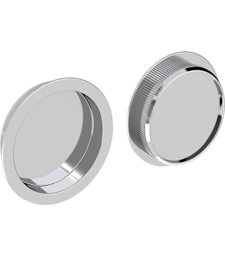Poignées à encastrer pour porte coulissante Jeu de 2 poignées rondes Ø 57 mm Encastrement : Ø 48 mm En acier finition chromé Garantie : 5 ans Quantité : 2 Lot de 2 poignées rondes à encastrer en acier finition chromé. Pour portes coulissantes d'épaisseur 25 mm minimum. Diamètre 57 mm. Encastrement Ø 48 mm. Poignée encastrable extra plate permettant aux portes de coulisser sans risque de collision. ...