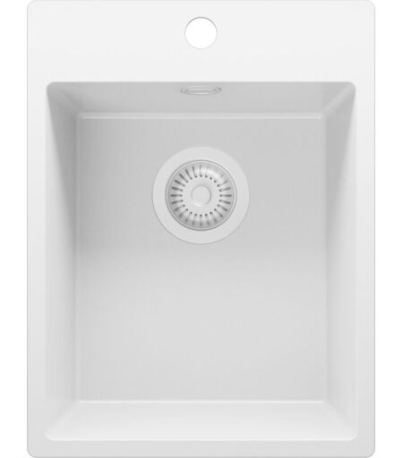 Primagran - Evier Cuisine en Granit 38x50cm, Lavabo 1 bac + Kit de Vidage, Évier à Encastrer au meuble 40cm - Riga, Tout Blanc
