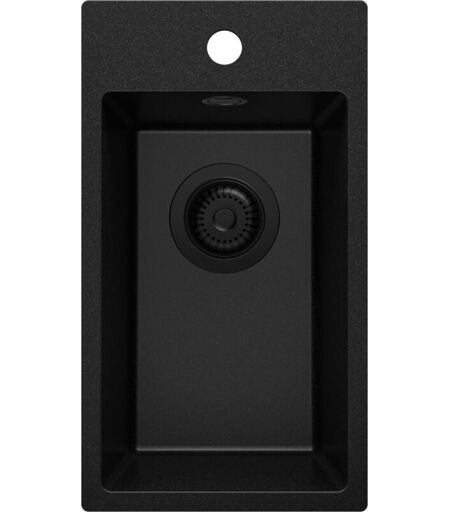 Primagran - Evier Cuisine en Granit 28x50cm, Lavabo 1 bac + Kit de Vidage, Évier à Encastrer au meuble 30cm - Riga, Tout Noir