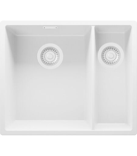 Primagran - Evier Cuisine en Granit 56x47cm, Lavabo 1,5 bacs + Kit de Vidage, Évier à Encastrer au meuble 60cm - London Slim Duo, Tout Blanc