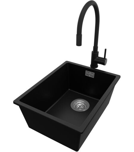 Primagran - Evier Cuisine en Granit 36x47cm, Lavabo 1 bac + Robinet 40x38cm + Kit de Vidage, Évier à Encastrer au meuble 40cm - London Slim, Noir