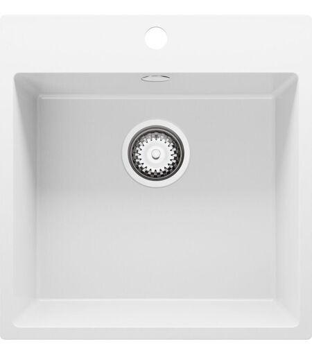 Primagran - Evier Cuisine en Granit 48x50cm, Lavabo 1 bac + Kit de Vidage, Évier à Encastrer au meuble 50cm - Riga, Blanc