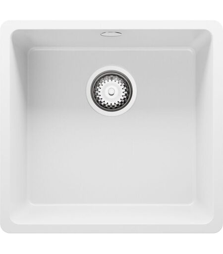 Primagran - Evier Cuisine en Granit 46x44cm, Lavabo 1 bac + Kit de Vidage, Évier à Encastrer au meuble 50cm - Venise Slim Easy, Blanc