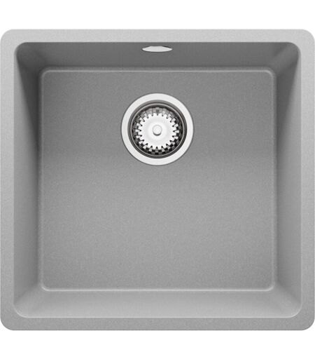 Primagran - Evier Cuisine en Granit 46x44cm, Lavabo 1 bac + Kit de Vidage, Évier à Encastrer au meuble 50cm - Venise Slim Easy, Gris