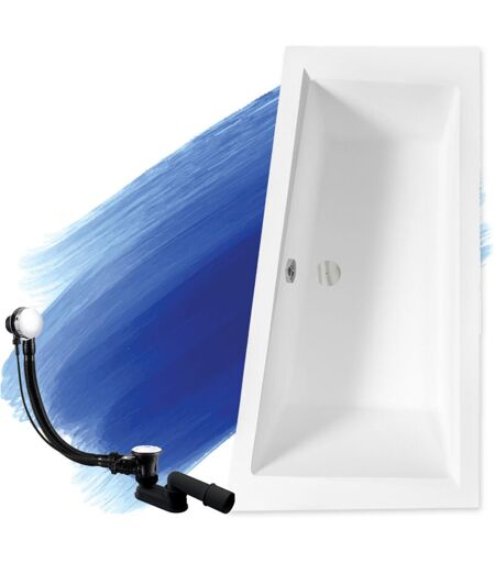 Badland - Baignoire Bain d'angle 150x85 Droite + appui-tête, Siphon de bain et pieds (support) - Set 4en1 - Fabriqué en ue intima