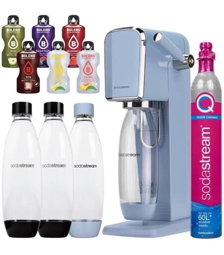 SodaStream Art Blue une bouteille + SodaStream 1L Fuse bottles Two-pack Black + bolero