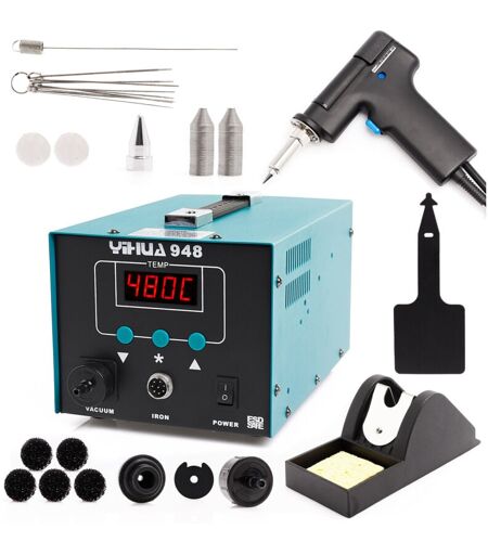 Station de dessoudage Yihua 948 Grâce à ses éléments chauffants efficaces, elle vous permet de dessouder rapidement et facilement tous les composants électroniques. Le fer à dessouder a été construit en tenant compte des normes ESD, vous pouvez donc être sûr que vous n'endommagerez pas les composants électroniques pendant le service. La station de dessoudage Yihua 948 corrige la température réglée en temps réel, grâce à un contrôleur PID précis, ce qui signifie que la station de soudage a une stabilité de température élevée, même avec de grandes fluctuations de réception. chaleur. L'alimentation électrique de la station est basée sur un transformateur avec une bonne isolation des éléments chauffants, ce qui permet une grande fiabilité et sécurité de fonctionnement. L'appareil dispose des fonctions suivantes : Fonctionnement en mode C/F. Possibilité de régler les unités dans lesquelles la température sera affichée sur l'écran. Fonction veille : Le ballon met beaucoup de temps à se ...