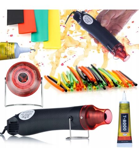 Rosfix Mini Pistola termica ad aria calda 300W + Colla universale T-8000 15ml + Set di tubi termorestringenti 164 pz.
