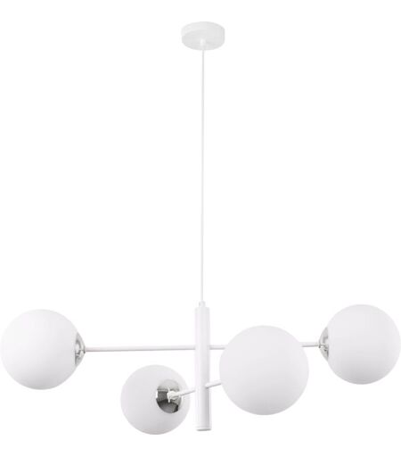 Suspension Vicenza Blanc-Chrome 4-Abat-Jour Blanc Plat E14