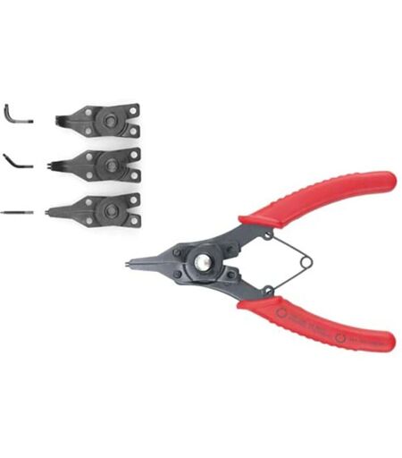 Les pinces à circlips sont conçues pour retirer et installer les circlips, qui sont un type courant d¿anneau de retenue. Le produit est adapté au fonctionnement avec deux types d'anneaux Seeger (externe et interne). Les différentes têtes peuvent s'adapter à des anneaux d'un diamètre de 10 à 50 mm. Longueur : 160 mm Diamètre des anneaux : 10 - 50 mm Pointe de 90 degrés : diamètre externe max. de 23 mm / diamètre interne de 20 mm Pointe d'angle : diamètre externe max. de 28 mm / diamètre interne de 23 mm Pointe droite : diamètre externe max. de 30 mm / diamètre interne de 27 mm ...