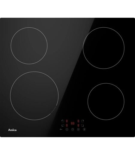 Plaque de cuisson à induction AMICA PI6501 noire avec quatre zones de cuisson. Équipée de la technologie de détection des casseroles, fonction PowerBooster pour une montée en température rapide, minuteur intégré, verrouillage enfant et indicateur de chaleur résiduelle. Dimensions : 59 x 52 x 5,8 cm. Puissance totale de 6,8 kW pour une cuisson efficace et sécurisée. ...