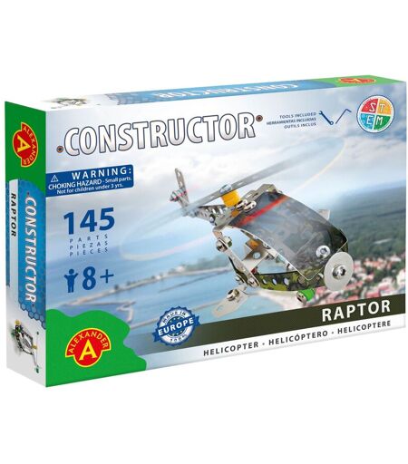 Constructor Raptor - Hélicoptère (145 pièces). Un jeu de construction intemporel fabriqué en métal chromé, avec des pièces en plastique colorées, dont l'assemblage se fait au moyen de vis et d'écrous. 100% fabriqué en Europe. Ce set de construction pour enfant à partir de 8 ans est livré avec des outils adaptés aux petites mains des enfants, pour visser ou dévisser leurs constructions à l'infini. Des instructions détaillée ...