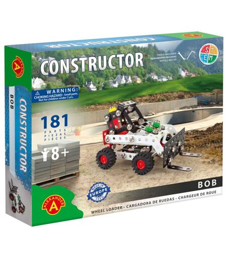 Constructor Bob - Chargeur sur roues (181 pièces). Un jeu de construction intemporel fabriqué en métal chromé, avec des pièces en plastique colorées, dont l'assemblage se fait au moyen de vis et d'écrous. 100% fabriqué en Europe. Ce set de construction pour enfant à partir de 8 ans est livré avec des outils adaptés aux petites mains des enfants, pour visser ou dévisser leurs constructions à l'infini. Des instructions détai ...