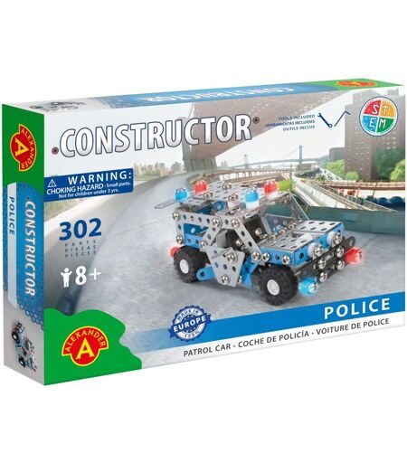 Constructor Police Patrol - Voiture de Police (302 pièces). Un jeu de construction intemporel fabriqué en métal chromé, avec des pièces en plastique colorées, dont l'assemblage se fait au moyen de vis et d'écrous. 100% fabriqué en Europe. Ce set de construction pour enfant à partir de 8 ans est livré avec des outils adaptés aux petites mains des enfants, pour visser ou dévisser leurs constructions à l'infini. Des instructi ...