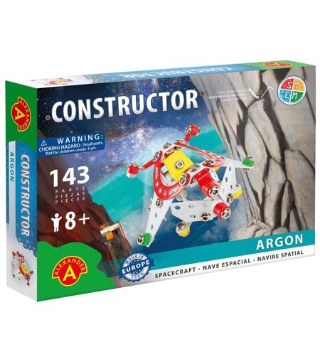 Constructor Argon - Navette spatiale (143 pièces). Un jeu de construction intemporel fabriqué en métal chromé, avec des pièces en plastique colorées, dont l'assemblage se fait au moyen de vis et d'écrous. 100% fabriqué en Europe. Ce set de construction pour enfant à partir de 8 ans est livré avec des outils adaptés aux petites mains des enfants, pour visser ou dévisser leurs constructions à l'infini. Des instructions détai ...