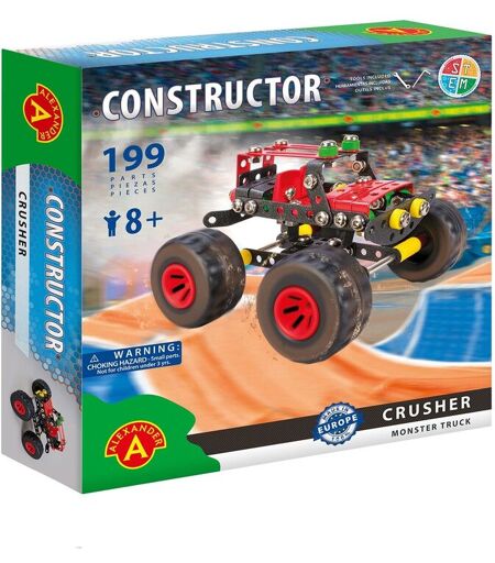 Constructor Crusher - Monster Truck (199 pièces). Un jeu de construction intemporel fabriqué en métal chromé, avec des pièces en plastique colorées, dont l'assemblage se fait au moyen de vis et d'écrous. 100% fabriqué en Europe. Ce set de construction pour enfant à partir de 8 ans est livré avec des outils adaptés aux petites mains des enfants, pour visser ou dévisser leurs constructions à l'infini. Des instructions détail ...