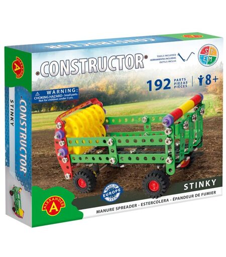 Constructor Stinky - Épandeur à fumier (192 pièces). Un jeu de construction intemporel fabriqué en métal chromé, avec des pièces en plastique colorées, dont l'assemblage se fait au moyen de vis et d'écrous. 100% fabriqué en Europe. Ce set de construction pour enfant à partir de 8 ans est livré avec des outils adaptés aux petites mains des enfants, pour visser ou dévisser leurs constructions à l'infini. Des instructions dé ...