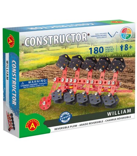 Constructor William - Charrue réversible (180 pièces). Un jeu de construction intemporel fabriqué en métal chromé, avec des pièces en plastique colorées, dont l'assemblage se fait au moyen de vis et d'écrous. 100% fabriqué en Europe. Ce set de construction pour enfant à partir de 8 ans est livré avec des outils adaptés aux petites mains des enfants, pour visser ou dévisser leurs constructions à l'infini. Des instructions d ...