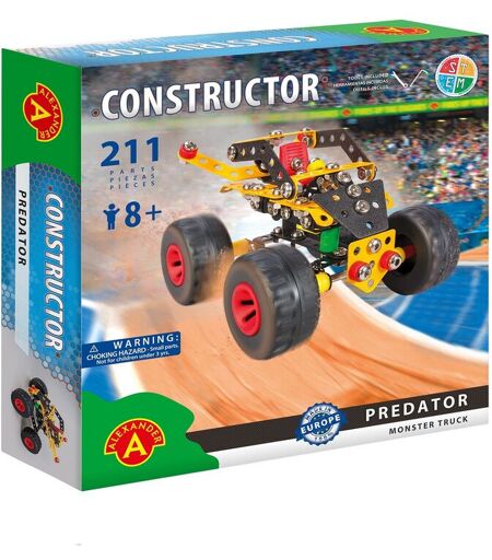 Constructor Predator - Monster Truck (211 pièces). Un jeu de construction intemporel fabriqué en métal chromé, avec des pièces en plastique colorées, dont l'assemblage se fait au moyen de vis et d'écrous. 100% fabriqué en Europe. Ce set de construction pour enfant à partir de 8 ans est livré avec des outils adaptés aux petites mains des enfants, pour visser ou dévisser leurs constructions à l'infini. Des instructions détai ...