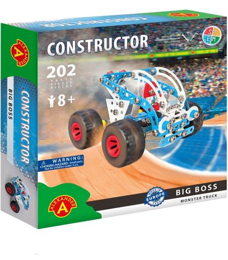 Constructor Big Boss - Monster Truck (202 pièces). Un jeu de construction intemporel fabriqué en métal chromé, avec des pièces en plastique colorées, dont l'assemblage se fait au moyen de vis et d'écrous. 100% fabriqué en Europe. Ce set de construction pour enfant à partir de 8 ans est livré avec des outils adaptés aux petites mains des enfants, pour visser ou dévisser leurs constructions à l'infini. Des instructions détai ...