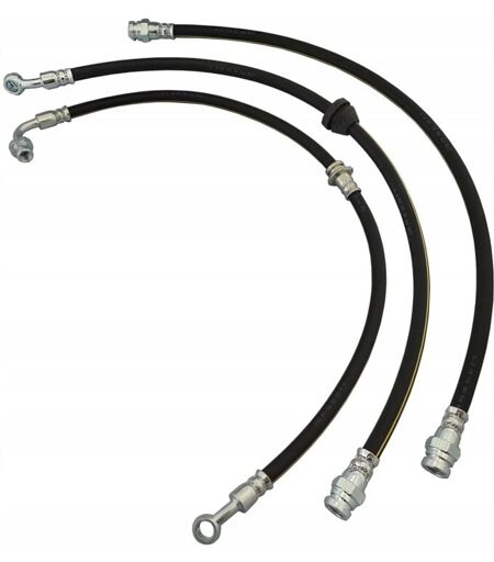 Conduites de frein flexibles en caoutchouc pour Suzuki Jimny SN413 Jeu de conduites de frein flexibles en caoutchouc SEMPERITSuzuki Jimny 3 SN années modèles 1998-2018L'ensemble comprend 3 pièces de conduites :Avant gauche - 510 mmAvant droit - 350 mmEssieu arrière - 385 mmLongueurs de série.Embouts en acier au carbone galvaniséSymbole du catalogue : ZPEG-1050 Avant droit : OEM : 51540-81A00 Filetage A : œillet fi10, 15' Filetage B : interne. M10x1Longueur : 350 mmAutres marquages : 24.5291-0345.3 Avant gauche : OEM : 51550-81A00 Filetage A : œillet fi10, 15' Filetage B : interne. M10x1, coude '90 Longueur : 510 mm Autres marquages : 24.5291-0508.3 Essieu arrière OEM : 51560-81A00 Filetage A : interne M10x1 DF Filetage B : interne M10x1DF Longueur : 385 mm Caractéristiques des conduites de frein flexibles en caoutchouc : Flexibilité: Le flexible de frein flexible est conçu pour amortir les vibrations et s'adapter aux mouvements de la suspension, garantissant ainsi un fonctionnement ...