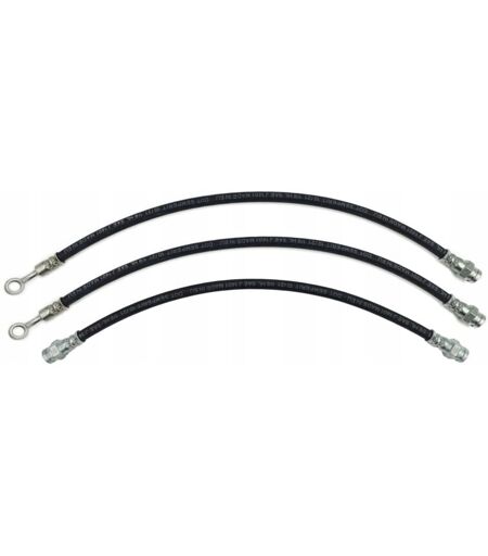 Suzuki Samurai JX jeu de durites de frein - rallongées 4" Jeu de conduites de frein flexibles en caoutchouc : SUZUKI SAMURAI JX Semperit SAEJ1401 1/8", double tresse textile. Conduites rallongées de 100 mm par rapport aux conduites standards - recommandées pour les modèles avec suspension surélevée. Possibilité d'extension supplémentaire sur demande. En raison de plusieurs versions différentes du système de freinage du modèle Samurai (y compris la différence entre les versions avec moteur essence et diesel), une comparaison de la configuration des conduites est recommandée. avec l'état réel de la voiture. Symbole du catalogue : ZPEG-1059/2 L'ensemble comprend 3 morceaux de câbles : Câbles pour l'essieu avant 2x : D0072 OEM : 51540-80151 Filetage A : oeillet fi10 15' Filetage B : interne. M10x1 DFD Longueur : 380mmAutres marquages : 5154020151 5154080150 5154080151 Essieu arrière 1x : D4732 OEM : 51560-83030 Filetage A : interne M10x1 DF Filetage B : interne M10x1 DFD Longueur : 400 mm ...