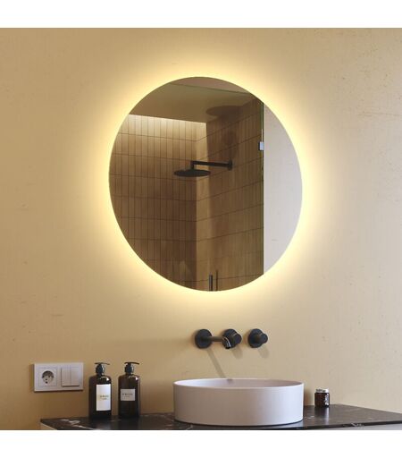Artforma - Miroir Rond De Salle De Bain 70x70 cm Moderne led Miroir Mural Rond Miroir Illumination led Eclairage Salle De Bain OKR082 Blanc Chaud