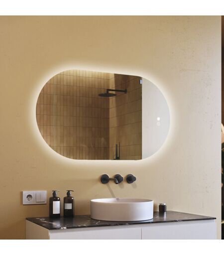 Artforma - Miroir de salle de bain avec éclairage, 120x70, Interrupteur tactile, Anti-buée, led Dual, Miroir Ovale