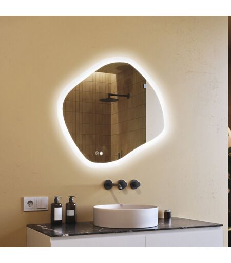MIROIRS DE SALLE DE BAIN AVEC ILLUMINATION LED Spécification technique Dimensions de miroir: 104x94 cm Épaisseur de miroir: 4mm Puissance absorbée: 9,6 W / m Longévité de diodes LED: 15 000h Quantité de diodes LED: 120 / m Autres: Le miroir est doté d’un transformateur 230V Dégrée se protection: IP20 Garantie: Oui, 2 ans L’éclairage: L’éclairage est de nature décorative INTERRUPTEUR TACTILE Appuyez simplement sur l'interrupteur pour allumer ou éteindre rapidement et intuitivement le rétroéclairage LED de votre miroir ! ILLUMINATION DE MIROIR. COULEUR LED AU CHOIX L’illumination constitue l’une des fonctions plus importants auprès nos miroirs. Grace a une technologie LED avancée on peut se réjouir de rationalité naturelle de lumière et de basse consommation de puissance a illumination allumée. En plus la possibilité de choix de tonalité LED, neutre ou froide, qui permet d’adapter le miroir spécifiquement pour soi même. POLISSAGE ET AFFÛTAGE. L’ACCENT SUR LA SÉCURITÉ L’affutage de ...