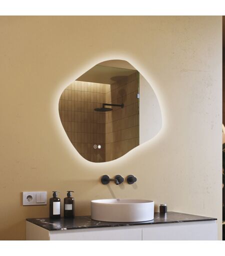 MIROIRS DE SALLE DE BAIN AVEC ILLUMINATION LED Spécification technique Dimensions de miroir: 94x84 cm Épaisseur de miroir: 4mm Puissance absorbée: 9,6 W / m Longévité de diodes LED: 15 000h Quantité de diodes LED: 120 / m Autres: Le miroir est doté d’un transformateur 230V Dégrée se protection: IP20 Garantie: Oui, 2 ans L’éclairage: L’éclairage est de nature décorative INTERRUPTEUR TACTILE Appuyez simplement sur l'interrupteur pour allumer ou éteindre rapidement et intuitivement le rétroéclairage LED de votre miroir ! ILLUMINATION DE MIROIR. COULEUR LED AU CHOIX L’illumination constitue l’une des fonctions plus importants auprès nos miroirs. Grace a une technologie LED avancée on peut se réjouir de rationalité naturelle de lumière et de basse consommation de puissance a illumination allumée. En plus la possibilité de choix de tonalité LED, neutre ou froide, qui permet d’adapter le miroir spécifiquement pour soi même. POLISSAGE ET AFFÛTAGE. L’ACCENT SUR LA SÉCURITÉ L’affutage de miroir ...
