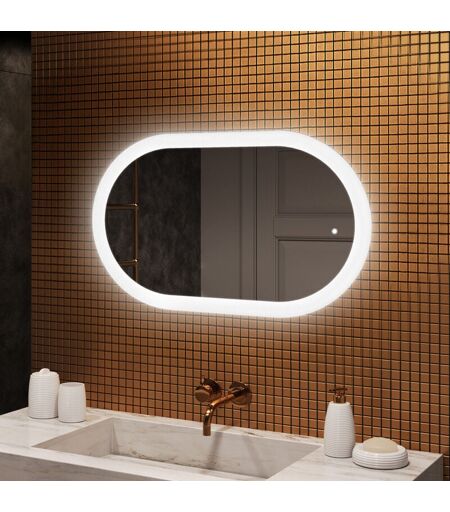 Artforma - Miroir salle de bain led, 80x50, Interrupteur tactile, led Dual, Miroir Ovale