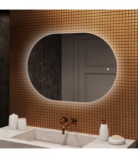 Artforma - Miroir salle de bain led, 100x70, Interrupteur tactile, led Dual, Miroir Ovale
