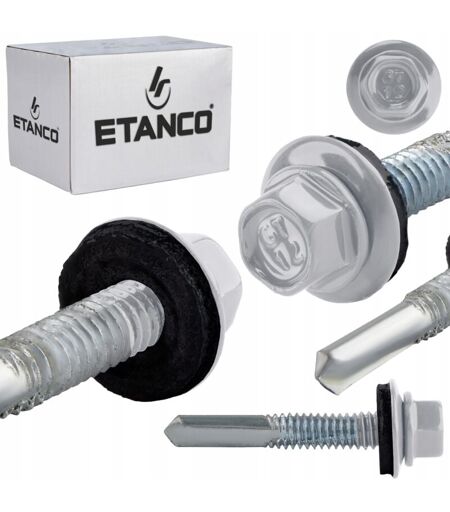 Vis autoperceuses à métaux avec rondelle en acier et joint EPDM Conçues pour la fixation de tôles profilées en acier de construction sur des structures en acier à parois minces (jusqu'à 12 mm d'épaisseur). Les paramètres les plus importants Modèle : GT 12 Z14 Longueur de vis : 5,5x35 mm Capacité de perçage dans l'acier : jusqu'à 12 mm Longueur maximale utile : 1 mm Douille : SW8 Matériau de la vis : acier galvanisé Couleur : RAL 9006 Emballage : 250 pièces. Avantages 1. Tête avec marquage Le marquage caractéristique des produits ETANCO permet leur reconnaissance facile, chaque lot de production reçoit un numéro unique, ce qui permet son identification précise. 2. Rondelle EPDM Fabriquée à partir du meilleur matériau d'étanchéité - EPDM. Il ne perd pas son élasticité avec le temps, il a une très longue période de vieillissement. Résistant aux conditions météorologiques changeantes et aux rayons UV. Une fois installé, il s'autovulcanise sur la tôle, créant une connexion étanche. 3. Tête ...