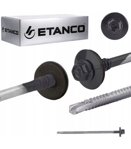 Vis pour panneaux sandwich avec rondelle en aluminium et joint EPDM Conçues pour la fixation de panneaux sandwich sur des structures en acier jusqu'à 6 mm d'épaisseur Paramètres clés Modèle : GTR 6 SP A19 Longueur de vis : 125 mm Épaisseur des panneaux pouvant être installés : 70-100 mm Capacité de perçage dans l'acier : jusqu'à 6 mm Douille : SW8 Matériau : acier galvanisé avec revêtement gRey.coat. Classe de corrosion : C1-C4 Couleur : 7016 Emballage : 100 pièces. Produit original d'une entreprise renommée Etanco® Avantages 1. Revêtement de peinture POWDER.COAT Protection anticorrosion supplémentaire significative et correspondance parfaite avec la couleur du revêtement dans la palette RAL/NCS. Les stabilisateurs UV garantissent la cohérence des couleurs même après une douzaine d'années, et la technologie moderne de revêtement en poudre Powder.coat garantit la durabilité du revêtement lors de l'installation et une longue durée de vie. 2. Rondelle EPDM Fabriquée à partir du meilleur ...