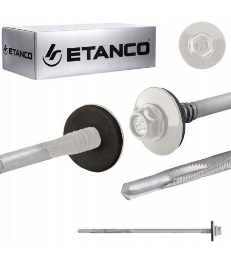 Vis pour panneaux sandwich avec rondelle en aluminium et joint EPDM Conçues pour la fixation de panneaux sandwich sur des structures en acier jusqu'à 12 mm d'épaisseur Paramètres clés Modèle : GTR 12 SP A19 Longueur de vis : 150 mm Épaisseur des panneaux pouvant être installés : 85-110 mm Capacité de perçage dans l'acier : jusqu'à 12 mm Douille : SW8 Matériau : acier galvanisé avec revêtement gRey.coat. Classe de corrosion : C1-C4 Couleur : RAL 9010 Emballage : 100 pièces. Produit original d'une entreprise renommée Etanco® Avantages 1. Revêtement de peinture POWDER.COAT Protection anticorrosion supplémentaire significative et correspondance parfaite avec la couleur du revêtement dans la palette RAL/NCS. Les stabilisateurs UV garantissent la cohérence des couleurs même après une douzaine d'années, et la technologie moderne de revêtement en poudre Powder.coat garantit la durabilité du revêtement lors de l'installation et une longue durée de vie. 2. Rondelle EPDM Fabriquée à partir du ...