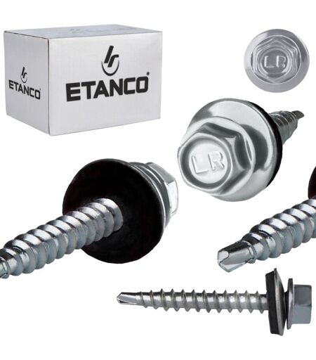 Vis autoperceuses, "farmers" avec rondelle en acier et joint EPDM Conçues pour la fixation de tôles profilées sur des structures en bois. Paramètres les plus importants Modèle : GT F2 Z14 Taille : 4,8 x 35 mm Capacité de perçage dans l'acier : jusqu'à 1 mm Longueur maximale utile : 12 mm Douille : SW8 Matériau : acier galvanisé Couleur : Galvanisé Emballage : 250 pièces. Produit original d'une entreprise renommée Etanco® Avantages 1. Revêtement de peinture POWDER.COAT Protection anticorrosion supplémentaire significative et correspondance parfaite avec la couleur du revêtement dans la palette RAL / NCS. Les stabilisateurs UV garantissent la cohérence des couleurs même après une douzaine d'années, et la technologie moderne de revêtement en poudre Powder.coat garantit la durabilité du revêtement lors de l'installation et une longue durée de vie. 2. Rondelle métallique La forme spéciale de la rondelle en acier assure un positionnement correct du matériau d'étanchéité EPDM. 3. Tête ...