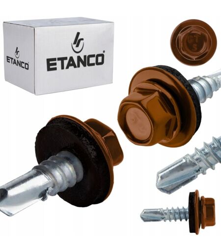 Vis autoperceuses à métaux avec rondelle en acier et joint EPDM Conçues pour la fixation de tôles profilées en acier de construction sur des structures en acier à parois minces (jusqu'à 5 mm d'épaisseur). Les paramètres les plus importants Modèle : GT 5 Z14 Longueur de vis : 5,5x19 mm Capacité de perçage dans l'acier : jusqu'à 5 mm Longueur maximale utile : 1 mm Douille : SW8 Matériau : acier galvanisé Couleur : 8004 Emballage : 250 pièces. Avantages 1. Tête avec marquage Le marquage caractéristique des produits ETANCO permet leur reconnaissance facile, chaque lot de production reçoit un numéro unique, ce qui permet son identification précise. 2. Rondelle EPDM Fabriquée à partir du meilleur matériau d'étanchéité - EPDM. Il ne perd pas son élasticité avec le temps, il a une très longue période de vieillissement. Résistant aux conditions météorologiques changeantes et aux rayons UV. Une fois installé, il s'autovulcanise sur la tôle, créant une connexion étanche. 3. Revêtement en zinc ...