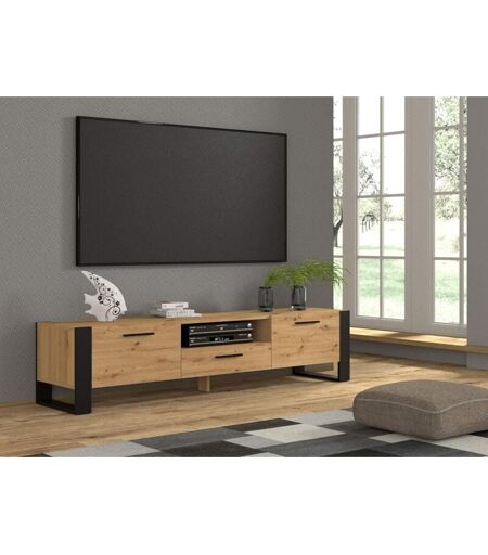 Bim Furniture - Meuble tv nuka 200x43x48 cm Chêne Artisan/Noir Mat Meuble bas Buffet Table tv Commode Sideboard Table Hi-Fi