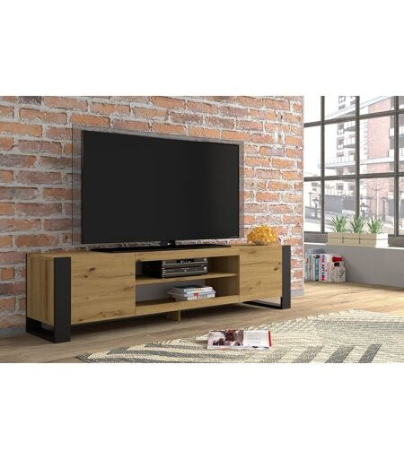 Bim Furniture - Meuble tv couleur chêne rustique avec pieds noirs188x47Hx40 Cm