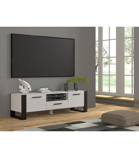 Bim Furniture - Meuble tv NUKA 160x43x48 cm Blanc Mat/Noir Mat Meuble bas Buffet Table tv Commode Sideboard Table Hi-Fi