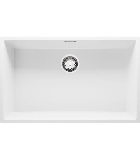 Primagran - Evier Sous Plan 76x47cm, Evier en Granit 1 bac + Kit de Vidage, Évier au meuble 80cm - London, Blanc