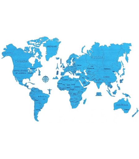 Puzzle en Bois - Carte du Monde XL (Cyan) ...