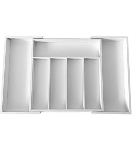 INSERT EXTENSIBLE EN BAMBOU POUR COUVERTS ET USTENSILES DE CUISINE Bois de bambou 100 % naturel peint en blanc, construction durable et de haute qualité 7 compartiments longs. Idéal pour les ustensiles de cuisine, les outils et les couverts Deux sections latérales extensibles offrent un espace supplémentaire Durable et facile à nettoyer Optimise l'espace S'adapte à la plupart des tiroirs standard Dimensions de la boîte fermée : 31 x 31,5 x 5 cm Dimensions de la boîte étendue : 52 x 31,5 x 5 cm ...