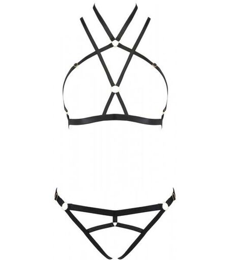 Soyez séductrice grâce à cet Ensemble 2 pièces Kelis Noir Devil Collection de chez Passion ! Cet ensemble entièrement composé en lanières noires comprend un sublime soutien-gorge et un string ouvert. Destiné aux femmes audacieuses, cet ensemble laissera entrevoir toutes vos parties intimes en cachant le minimum ! Le soutien-gorge dévoilera aux yeux de votre partenaire vos seins pour un effet provocant et irrésistible assuré, les lanières de celui-ci se croisent et viennent se déposer délicatement autour de votre cou pour une touche élégante. Le string assorti ouvert où se mélange anneaux et lanières afin de sublimer de la meilleure façon vos courbes féminines. Dans cet ensemble l'excitation de votre partenaire sera à son comble ! Tailles S/M, L/XL, XXL/XXXL. ...