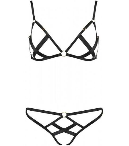 Soyez séductrice grâce à cet Ensemble 2 Pièces Nicky Noir Devil Collection de chez Passion ! Cet ensemble est fait de lanières noires et comprend un sublime soutien-gorge et un string ouvert. Destiné aux femmes audacieuses, cet ensemble laissera entrevoir toutes vos parties intimes en cachant le minimum ! Le soutien-gorge dont les lanières se croisent habille de manière très sexy votre poitrine pour offrir une sublime vue à votre moitié. Le string assorti ouvert sera la touche à la fois sexy et glamour de cet ensemble. Surprenez votre partenaire dans cet ensemble plus que sexy... Lanières réglables. Tailles S/M, L/XL, XXL/XXXL. ...