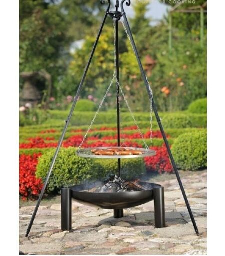 Grille en acier noir sur trépied + Brasero de jardin PALMA Brasero de jardin PALMA au charbon Belle forgée brasero PALMA peut être utilisée de plusieurs façons. En le combinant avec un barbecue sur un trépied. Le même foyer sera un choix pratique pour un feu, grille portable, source de chaleur, ainsi que d'une manière élégante de l'éclairage. Avec la poignée montée sur les deux côtés du four peuvent être rapidement et facilement déplacé à n'importe quel point dans le jardin ou d'une terrasse de créer facilement et en toute sécurité un incendie. Les petites dimensions du four, il est possible de prendre facilement avec vous pour un pic nic ou autre. Foyer de Jardin PALMA a été peint avec de la poudre noir sablée pour une grande résistance aux dommages mécaniques et aux intempéries. BRASERO: - épaisseur: 2,5 mm - finition: en acier - dimensions disponibles: Ø: 60cm, 70cm ou 80cm Ø: 60cm - 9kg - H: 20cm - largeur totale: 66cmØ: 70cm - 11kg - H: 20cm - largeur totale: 76cmØ: 80cm - 15kg ...
