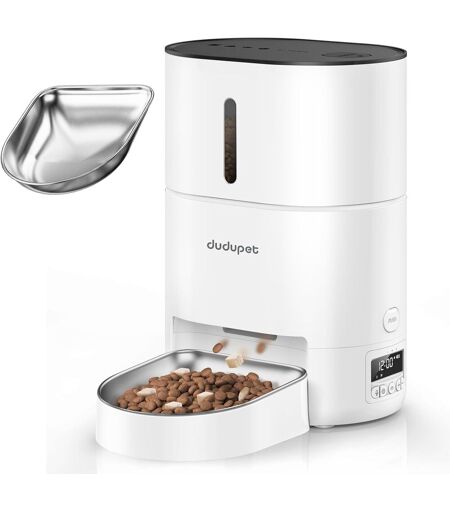 Facile à programmer Le distributeur croquettes chat automatique PET vous permet de programmer facilement la dose de nourriture requ pour chaque repas et l'heure.Puis il distribuera à l'heure programmée.Votre animal de compagnie ne manquera pas un battement ! Enregistrement audio Vous pouvez enregistrer votre voix et ainsi indiquer à votre animal que la nourriture arrive dans le bol.Appuyez et maintenez le bouton pour commencer l'enregistrement, et il prend en charge jusqu'à 10 secondes.Il suffit de distribuer la nourriture soit par programmation, soit manuellement. Capacité de 4L La distributeur croquettes chat a une grande capacité de 4L avec un fermoir intégré empêchant le chat d'ouvrir. Il vous permet de mieux gérer l'alimentation de votre animal de compagnie.La distributeur croquette chien est également conçue avec un sac déshydratant intégré (inclus) pour garder la nourriture fraîche. Double alimentation Le distributeur automatique croquettes chat peut util r un adaptateur DC 5V ou connecter une pile alcaline 3 D (non incluse) comme source d'alimentation de secours. Nous recommandons d'util r les deux méthodes de chargement afin que votre chat puisse être nourri même si l'alimentation est interrompue pendant votre absence. Livraison et garantie après-vente 1 distributeur croquettes ; 1 plateau en acier inoxydable ; adaptateur 5V ; 1 sac déshydratant ; 1 manuel d'instructions. Si vous avez des questions, n'hésitez pas à nous contacter, nous vous donnerons certainement une réponse satisfaisante. ...