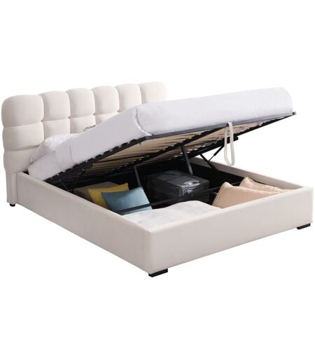 HOMIFAB Lit coffre adulte 160x200 cm avec sommier et tête de lit capitonnée en velours beige - Lola